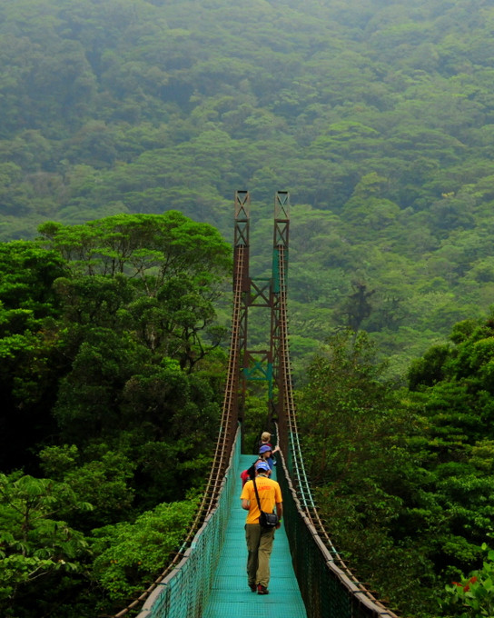 • Magické mlžné lesy Monteverde – procházka po visutých mostech vysoko v korunách stromů a setkání s exotickými ptáky a orchidejemi.